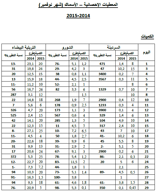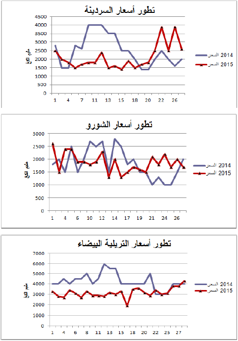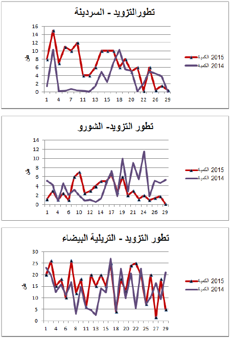 السردينة :زيادة هامة في التزويد مقارنة بنفس الفترة من سنة 2014 ويقدر مؤشر الكميات بـ 250.