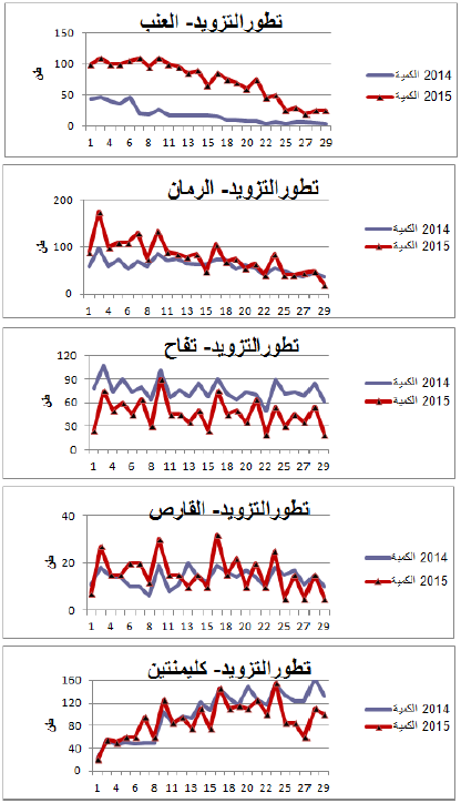 العنب: زيادة هامة في التزويد مقارنة بنفس الفترة من سنة 2014 ويقدر مؤشر الكميات بـ 435.