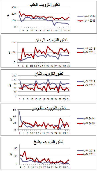 العنب: زيادة في التزويد مقارنة بنفس الفترة من سنة 2014 ويقدر مؤشر الكميات بـ 157.