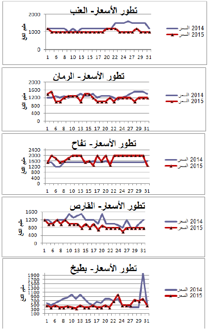 القارص: انخفاض نسبي في الأسعار مقارنة بنفس الفترة من سنة 2014 ويقدر مؤشرالأسعار بـ83.