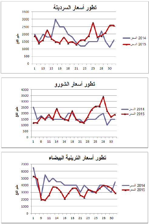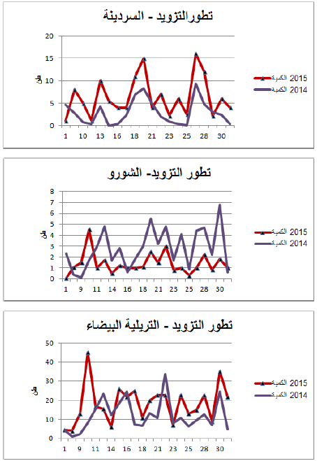 السردينة :زيادة في التزويد مقارنة بنفس الفترة من سنة 2014 ويقدر مؤشر الكميات بـ 221.