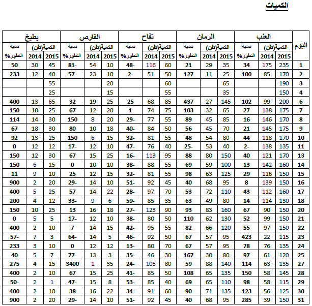 القارص: زيادة نسبية في التزويد مقارنة بنفس الفترة من سنة 2014 ويقدر مؤشر الكميات بـ108.