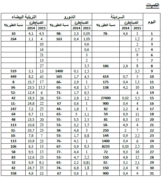 الشورو : تراجع في التزويد مقارنة بنفس الفترة من سنة 2014 ويقدر مؤشر الكميات بـ 49.
