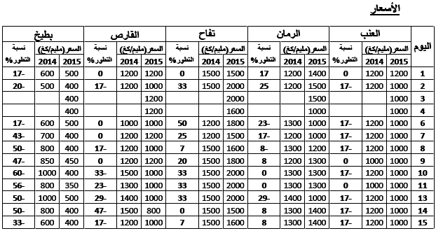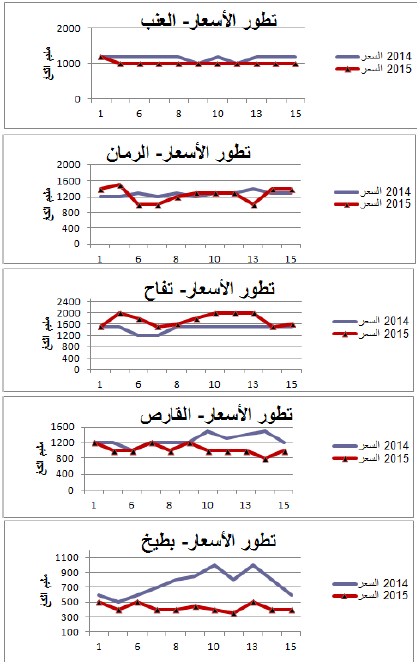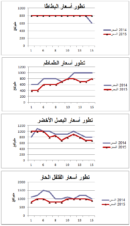 القارص: انخفاض نسبي في الأسعار مقارنة بنفس الفترة من سنة 2014 ويقدر مؤشرالأسعار بـ87.