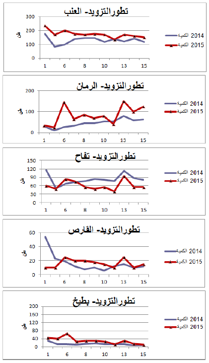 العنب: زيادة في التزويد مقارنة بنفس الفترة من سنة 2014 ويقدر مؤشر الكميات بـ 135.