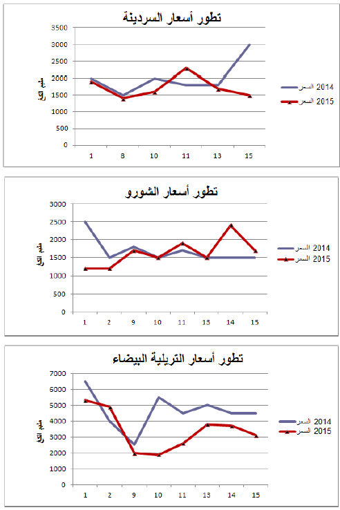 السردينة : انخفاض نسبي في الأسعار مقارنة بنفس الفترة من سنة 2014 ويقدر مؤشرالأسعار بـ95.