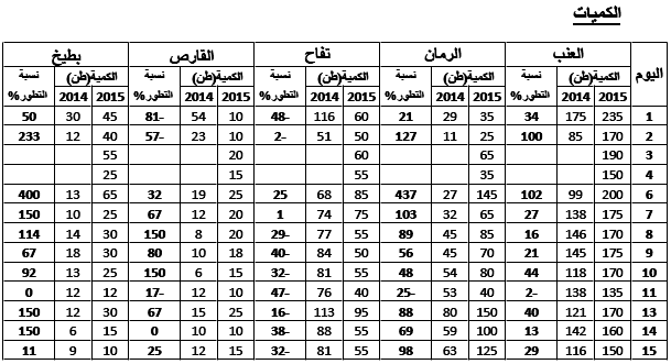 الرمان: زيادة هامة في التزويد مقارنة بنفس الفترة من سنة 2014 ويقدر مؤشر الكميات بـ 185.