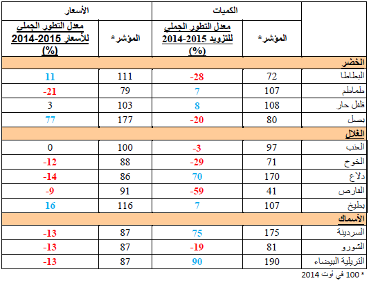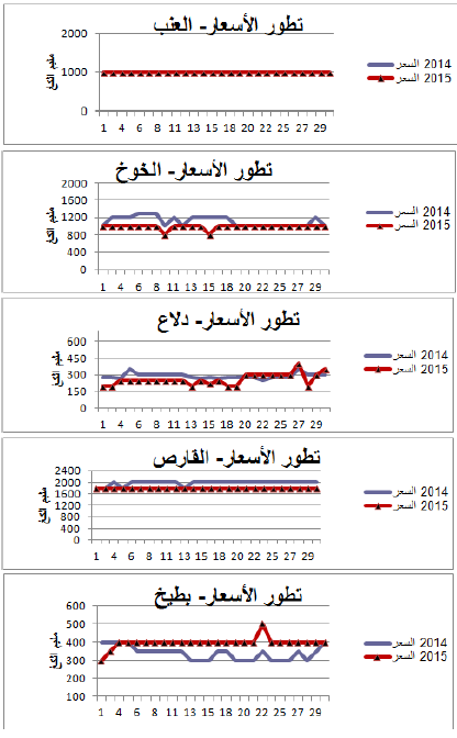 القارص: انخفاض نسبي في الأسعار مقارنة بنفس الفترة من سنة 2014 ويقدر مؤشرالأسعار بـ91.