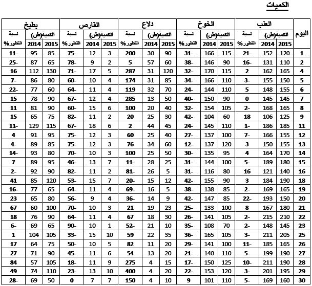 القارص: تراجع هام في التزويد مقارنة بنفس الفترة من سنة 2014 ويقدر مؤشر الكميات بـ41.