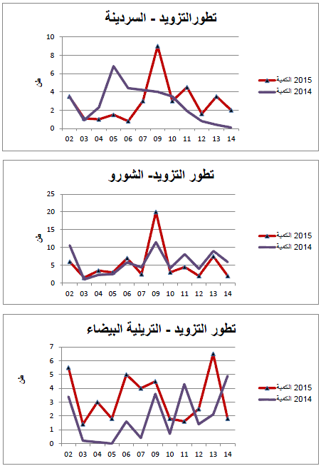 التريلية البيضاء: زيادة في التزويد مقارنة بنفس الفترة من سنة 2014 ويقدر مؤشر الكميات بـ 177.
