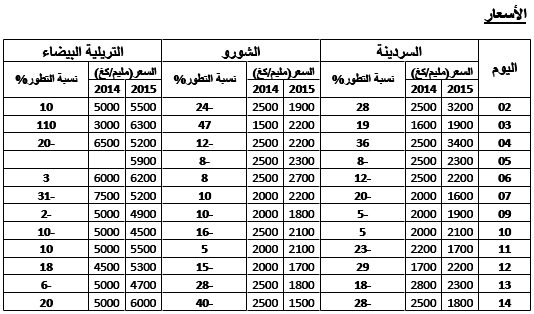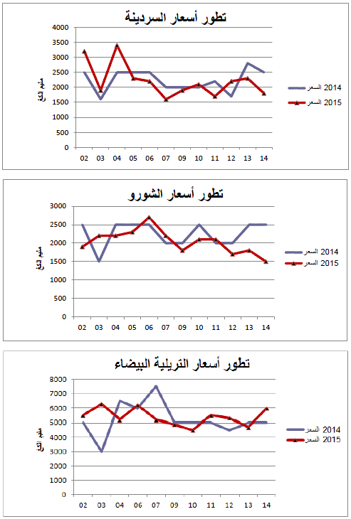 السردينة : استقرار في الأسعار مقارنة بنفس الفترة من سنة 2014.