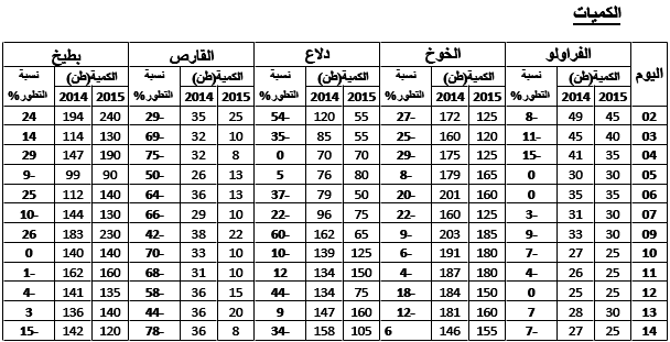 القارص: تراجع هام في التزويد مقارنة بنفس الفترة من سنة 2014 ويقدر مؤشر الكميات بـ 41.