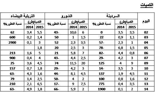الشورو : تراجع نسبي في التزويد مقارنة بنفس الفترة من سنة 2014 ويقدر مؤشر الكميات بـ  89