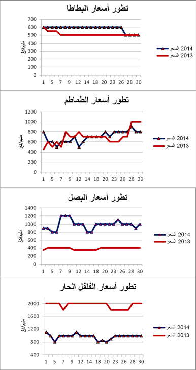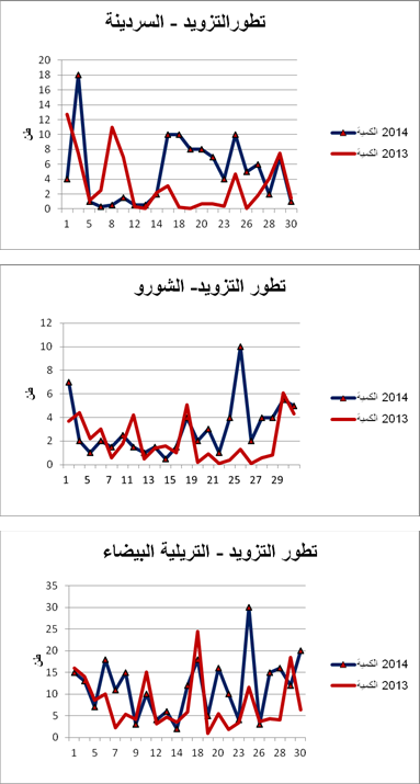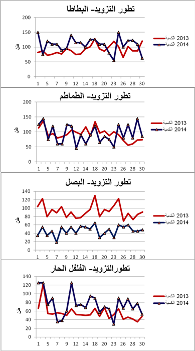 معدل التطور الجملي للأسعار 2013-2014 (%) معدل التطور الجملي للتزويد 2013-2014 (%)