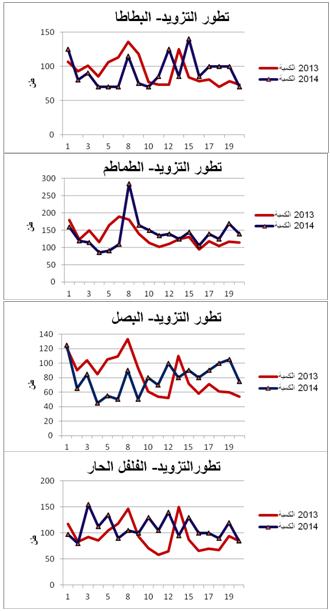 - البطاطا : استقرار في التزويد مقارنة بنفس الفترة من سنة 2013.